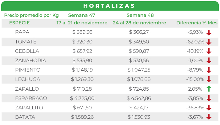 Las condiciones climáticas favorables impulsaron la producción de ZAPALLITO, lo que se tradujo en un ingreso elevado de mercadería. Los precios promedio se mantuvieron en descenso.