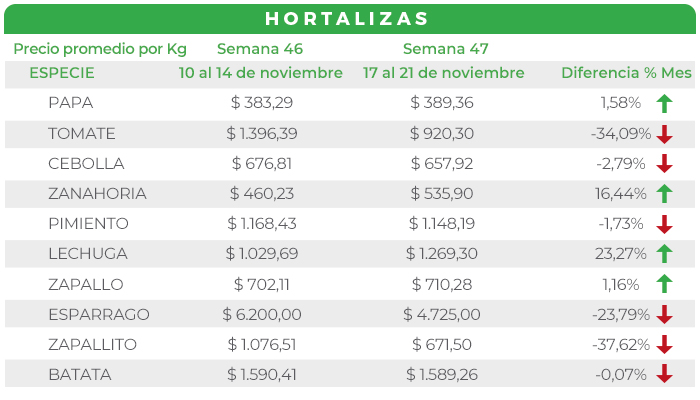 Se incorporaron lotes de ZANAHORIA y ZAPALLO provenientes de Brasil, lo cual generó un aumento de los precios promedio.