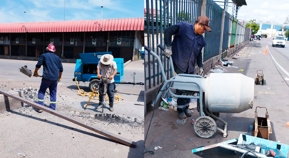 Se concretaron trabajos de bacheo, reparación de rampas y colocación de mojones para optimizar y garantizar el tránsito seguro de los peatones en el área transaccional.