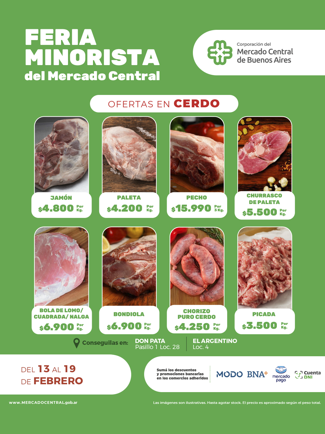 Estas nuevas ofertas las podés encontrar en cortes de carne, cerdo, pollo, pescado y productos de almacén. No dudes en buscar todo lo que necesitás para tu mesa en un sólo lugar: La Feria Minorista del Mercado Central.