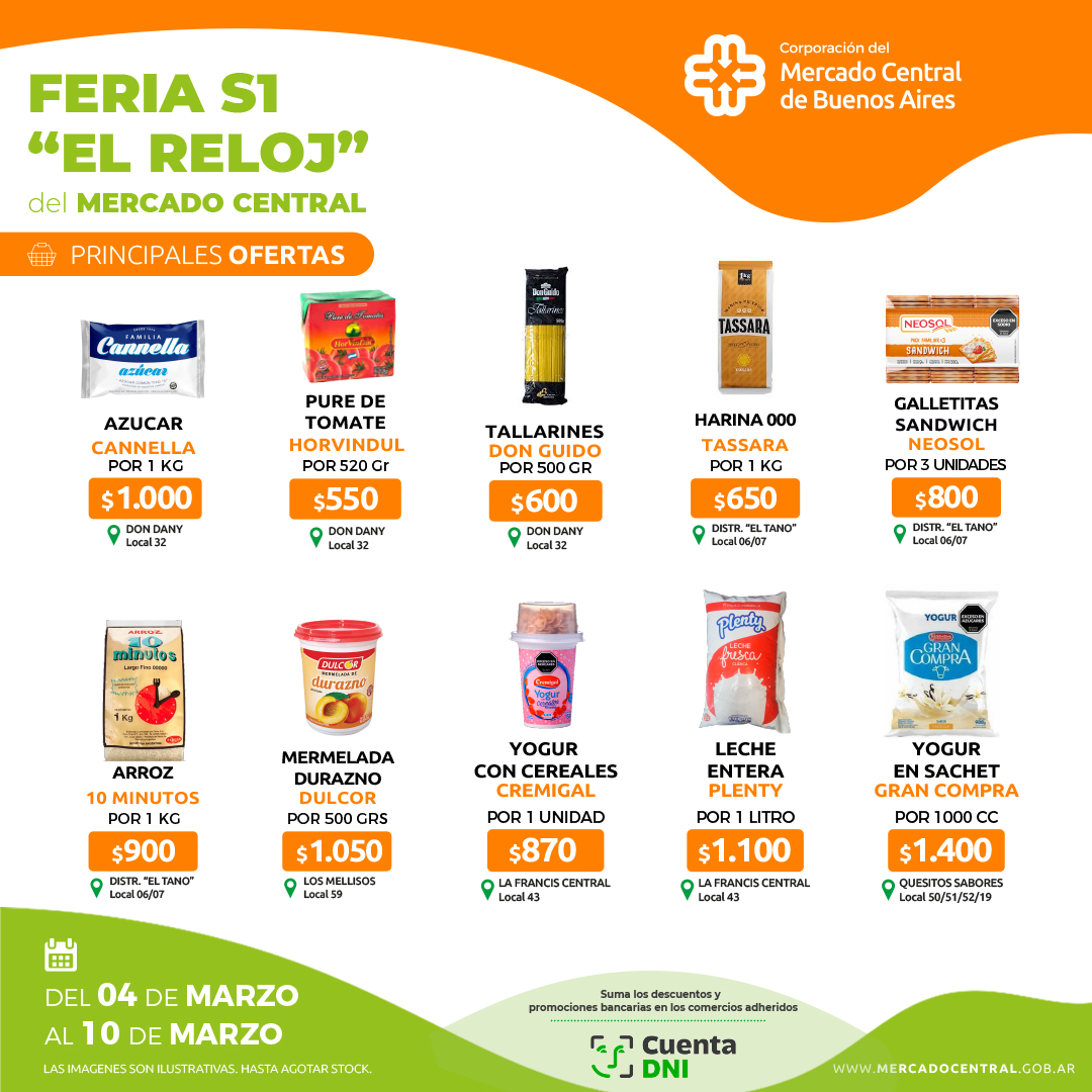 Los mejores precios los encontrás en la Feria S1 "El Reloj"