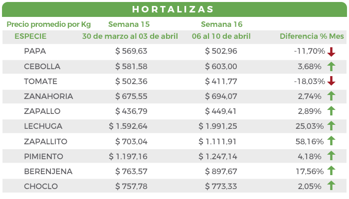 Por su parte, BERENJENA y CHOCLO registraron aumentos en sus valores debido a las condiciones climáticas y precios muy bajos con respecto a la semana anterior.