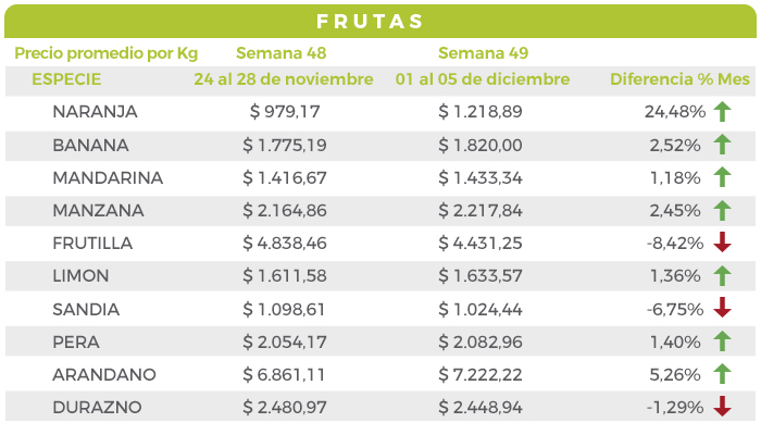 Según el comportamiento de la oferta y la demanda, muchos productos destacados en este informe variaron en su precio, considerando factores como el clima, temporada y zonas de producción.