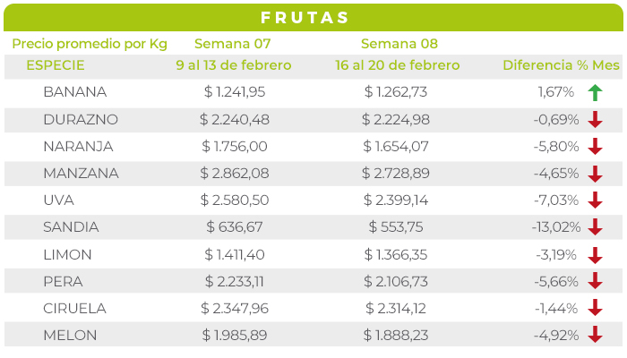 El resto de las frutas mantuvo un comportamiento de precios habitual para esta época del año, con una demanda que comienza a regularse y una oferta que se mantiene abundante.