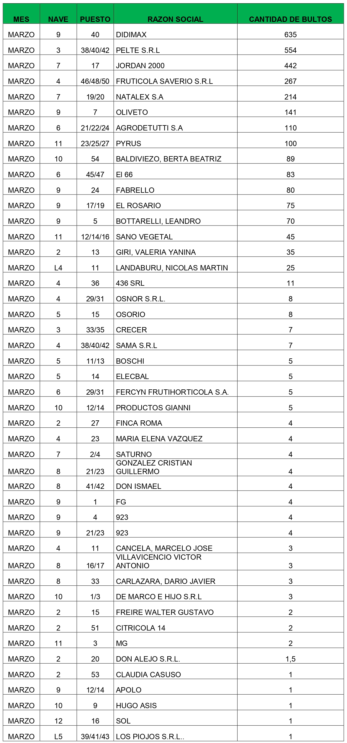 El Mercado en números